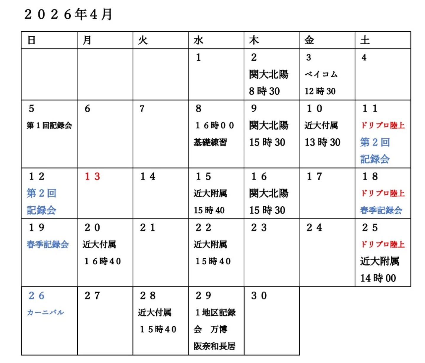 ・練習、練習会に関する日程調整